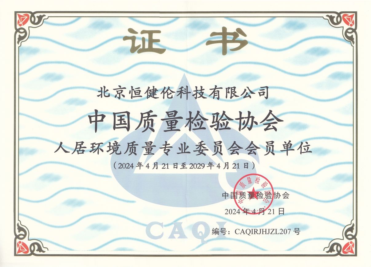 2024年4月21日,北京恒健伦科技有限公司正式成为中国质量检验协会人居环境质量专业委员会会员单位,这标志恒健伦在推动人居环境高质量发展、促进绿色健康居住环境的道路上迈出了坚实的一步。